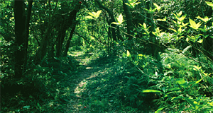 ヤマビルが木の枝や葉などから落ちてくる場所では、肩周りや帽子にもスプレーしてください。